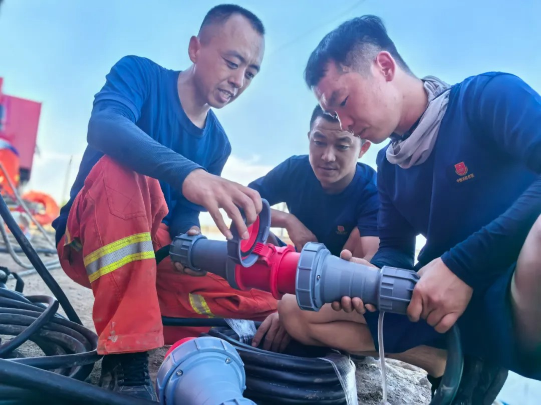大功率水泵的轟鳴聲,成為災(zāi)區(qū)最動(dòng)人的聲音。為守住排水防線(xiàn),中煤榆林隊(duì)始終堅(jiān)持排澇效率與安全管理并重,將安全視作不可逾越的底線(xiàn)。